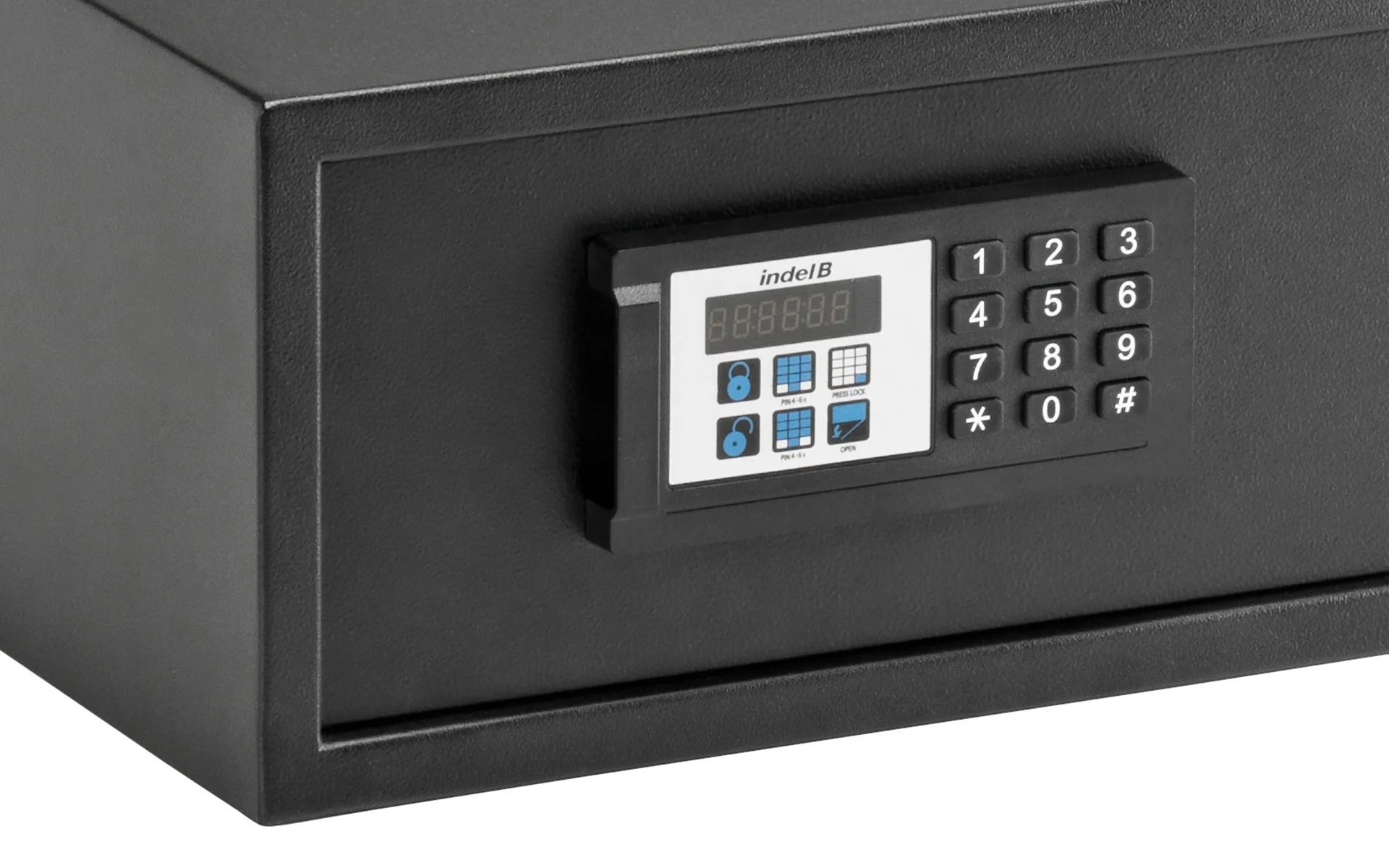 Safe30 Easy værdiskab / pengeboks er med tastatur og belyst display med mulighed for valg af kode fra 4 til 9 cifre. Emergency adgang gennem hovednøgle, 4 til 9 cifret masterkode eller elektronisk master nøgle. Minimum plads, maksimal sikkerhed. Safe 30 easy er et pengeskab til opbevaringsplads for værdigenstande bag en dørlås med 2 massive stål bolte, 18 mm hver. Fastgøres via. De 4 monterings huller samt tilhørende bolte, som er placeret i bunden samt bag pladen.