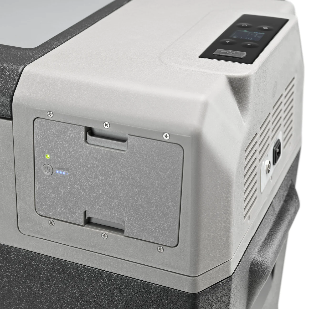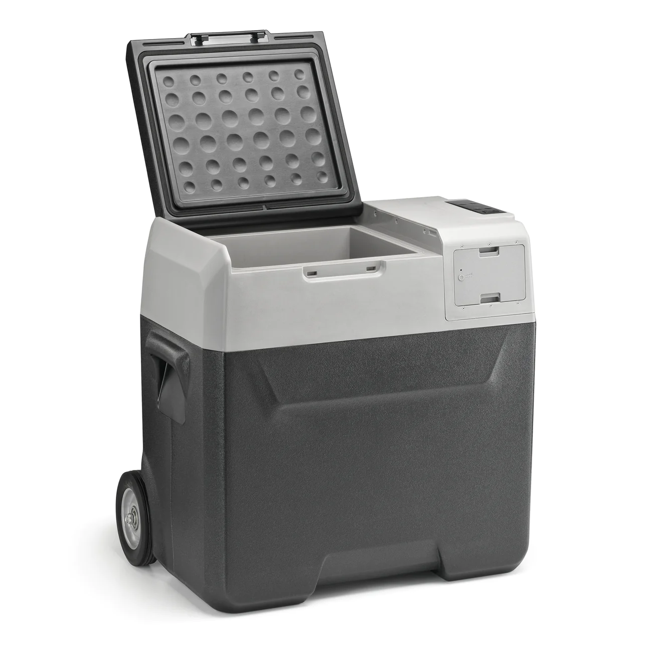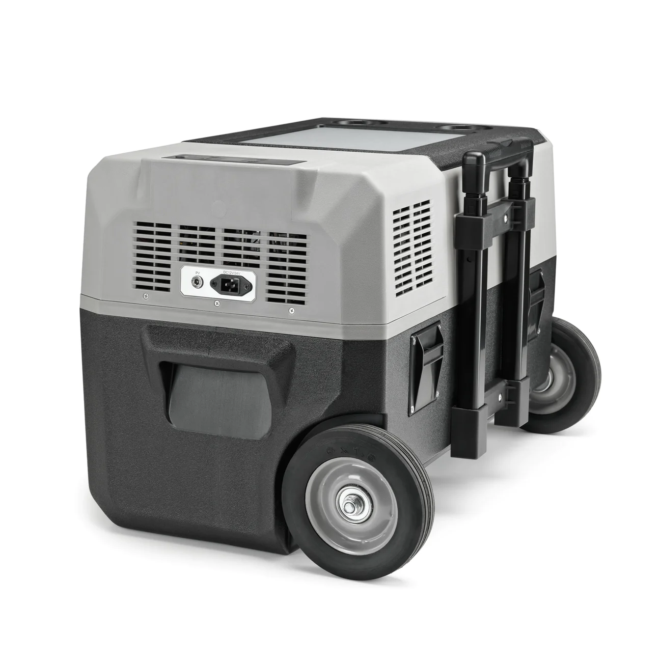 IndelB LiON COOLER X50A køleboks med kompakt og effektiv kompressor der garanterer fremragende køleydelse, selv ved høje omgivelsestemperturer. Køleboksen udstyret med gummi hjul og teleskob håndtag, som trasporten til en leg. Køleboksen indstilles simpelt via. det digitale display samt bluthoot forbindelse til overvågning af drift parameterne. Det intergrede batteri sørger for op til 21 timers drift. Batteriet kan oplades med solcelle panel. (Dette købes serperat)
