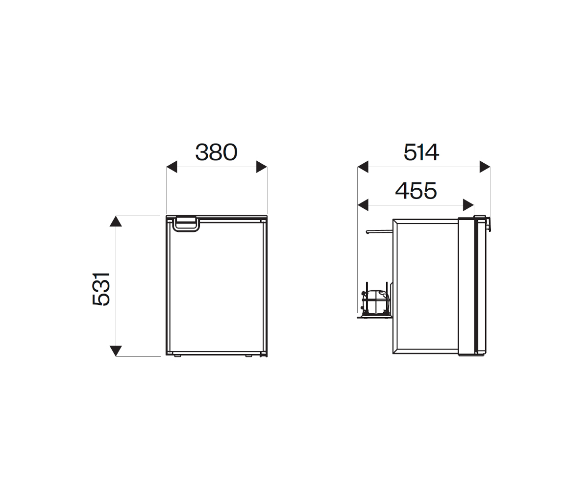 Cruise 42 er til fast montering i både, autocampere og campingvogne m.m. Cruise 42 er lige så komfortabel udstyret som et almindeligt køleskab. Normal køling og frysning. Kan også anvendes som frit stående køleskab. Cruise 42 kan anvendes der hvor plads er et problem. Kompressor kan placeres op til 1.5m fra køleskabet